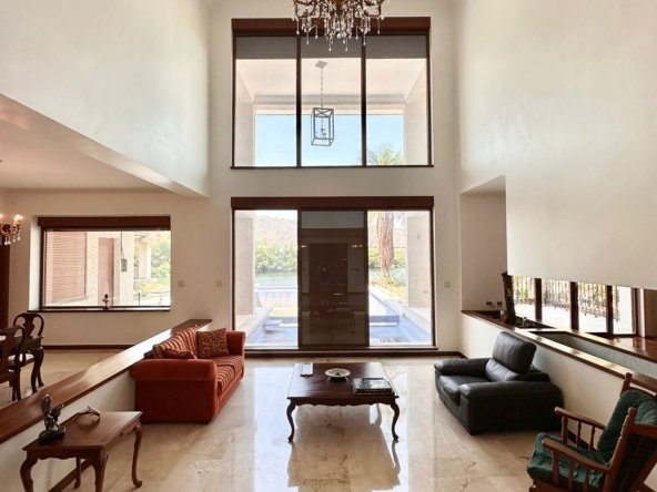 🛋️ Amplia Sala y Comedor con muebles de lujo y lámparas de cristal.